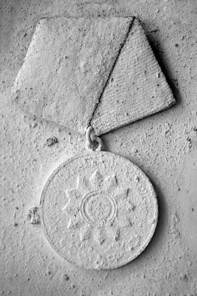 Counting the Tanks examines how ideology is embedded in childhood through militarised education. Using archival materials—badges and medals—it traces how belief systems are shaped through ritual and reward. Symbols of honour and belonging return here as fragile residues of control. Embedded in ash and emulsion—made from burned contemporary military-themed media and toy packaging—these materials speak to how belief hardens into institutional memory.